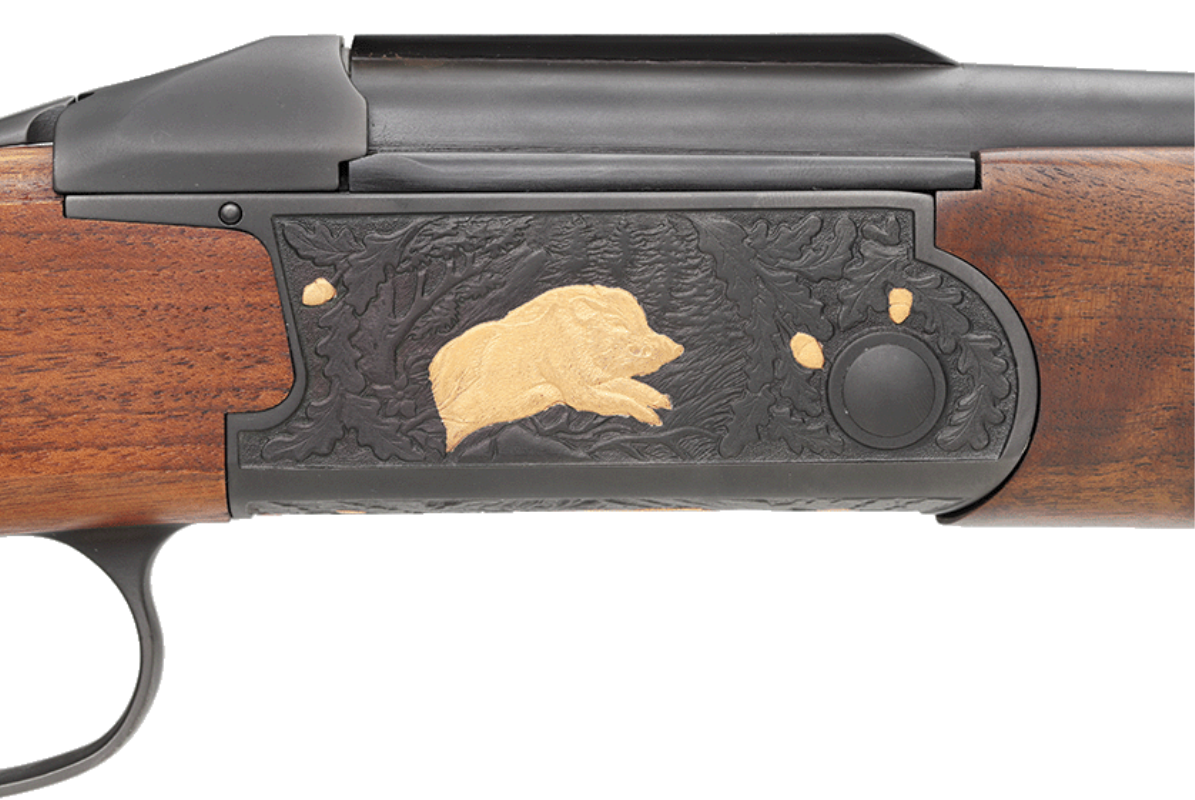 schwarze Basküle mit goldener Jagdgravur
