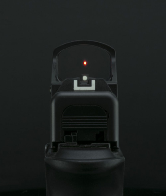 The RMSd is a compact and durable pistol red dot sight, machined from aerospace-grade aluminum to withstand recoil while remaining lightweight. Its discreet size allows for easy mounting, and automatic brightness adjustment ensures clear targeting in any environment. A quick-release, side-accessible battery drawer facilitates battery changes without dismounting the sight. The low-profile design enables co-witnessing with standard sights on many Glock models, eliminating the need for suppressor height sights.