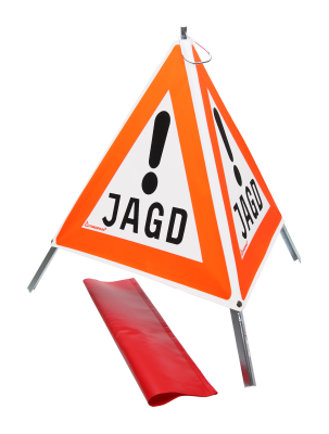 Triopan-Faltsignal "ACHTUNG JAGD", komplett mit Etui