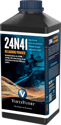Vihtavuori 24N41 est une poudre de fusil traité à base unique très similaire à la 20N29. Il a une très grande granulométrie (longueur 2,3mm par diamètre 1,3mm) et une vitesse de combustion extrêmement lente, parfaitement adaptée au .50 BMG. Il peut également être utilisé pour certaines valises de grande capacité, telles que le .300 Lapua Magnum, le.300 Rem. Ultra Mag, et le.338 Lapua Magnum. Sur les deux, 24N41 est légèrement plus rapide que 20N29, avec un taux de combustion relatif renouvelé de 39 pour le 24N41 comparé à 36 pour le 20N29, lorsque N110 est donné l'indice 100.